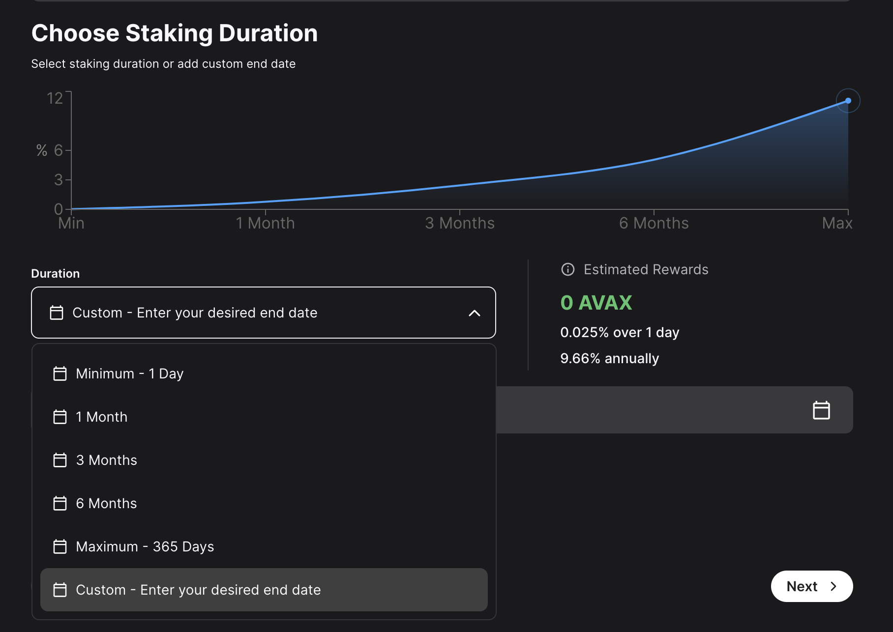 ); } ``` ## Cross-Chain Operations JSON-RPC accounts support cross-chain operations through the Avalanche Client SDK: ```typescript // P-Chain export transaction const pChainExportTxn = await walletClient.pChain.prepareExportTxn({ destinationChain: "C", fromAddress: address, exportedOutput: { addresses: [address], amount: avaxToWei(0.001), }, }); const txHash = await walletClient.sendXPTransaction(pChainExportTxn); ``` ## Best Practices ### 1. Check Provider Availability ```typescript // Always check if the provider is available if (typeof window !== "undefined" && window.avalanche) { // Core is available } else if (typeof window !== "undefined" && window.ethereum) { // MetaMask is available } else { // No wallet provider found } ``` ### 2. Handle Network Switching ```typescript // Check if wallet is on the correct network const currentChainId = await walletClient.getChainId(); if (currentChainId !== avalanche.id) { await walletClient.switchChain({ id: avalanche.id }); } ``` ### 3. Graceful Error Handling ```typescript const handleWalletError = (error: any) => { switch (error.code) { case 4001: return "User rejected the request"; case -32002: return "Request already pending"; case -32602: return "Invalid parameters"; default: return error.message || "Unknown error occurred"; } }; ``` ## Troubleshooting ### Common Issues **Provider Not Found** ```typescript // Check if provider exists if (!window.avalanche && !window.ethereum) { throw new Error("No wallet provider found. Please install Core or MetaMask."); } ``` **Wrong Network** ```typescript // Ensure wallet is on the correct network const chainId = await walletClient.getChainId(); if (chainId !== avalanche.id) { await walletClient.switchChain({ id: avalanche.id }); } ``` **User Rejection** ```typescript try { await walletClient.send({ to: address, amount: 0.001 }); } catch (error) { if (error.code === 4001) { console.log("User rejected transaction"); } } ``` ## Next Steps - **[Local Accounts](accounts/local)** - Learn about local account management - **[Wallet Operations](methods/wallet-methods/wallet)** - Learn how to send transactions - **[Cross-Chain Transfers](methods/wallet-methods/wallet#cross-chain-transfers)** - Moving assets between chains # Network-Specific Addresses (/docs/tooling/avalanche-sdk/client/accounts/local/addresses) --- title: "Network-Specific Addresses" icon: "map-pin" --- ## Overview Avalanche uses different address formats for each chain. EVM addresses work the same across networks, but XP addresses use network-specific HRPs (Human-Readable Prefixes). ## Address Formats ### EVM Addresses (C-Chain) EVM addresses are the same across all networks: ```typescript const evmAddress = account.getEVMAddress(); // 0x742d35Cc... ``` ### XP Addresses (X/P-Chain) XP addresses use network-specific HRPs: ```typescript // Mainnet const mainnetX = account.getXPAddress("X", "avax"); // X-avax1... const mainnetP = account.getXPAddress("P", "avax"); // P-avax1... // Testnet (Fuji) const fujiX = account.getXPAddress("X", "fuji"); // X-fuji1... const fujiP = account.getXPAddress("P", "fuji"); // P-fuji1... ``` ## Network Configuration ```typescript // Mainnet addresses const mainnet = { evm: account.getEVMAddress(), xChain: account.getXPAddress("X", "avax"), pChain: account.getXPAddress("P", "avax"), }; // Testnet addresses const testnet = { evm: account.getEVMAddress(), xChain: account.getXPAddress("X", "fuji"), pChain: account.getXPAddress("P", "fuji"), }; ``` ## Next Steps - **[Account Utilities](accounts/local/utilities)** - Account validation and utilities - **[Using Accounts with Clients](accounts/local/clients)** - Client integration patterns # Using Accounts with Clients (/docs/tooling/avalanche-sdk/client/accounts/local/clients) --- title: "Using Accounts with Clients" icon: "link" --- ## Overview Accounts work with both public clients (read-only) and wallet clients (transactions). You can hoist the account into the client or pass it to each method. ## Public Client (Read-Only) ```typescript import { createAvalancheClient } from "@avalanche-sdk/client"; import { avalanche } from "@avalanche-sdk/client/chains"; import { privateKeyToAvalancheAccount } from "@avalanche-sdk/client/accounts"; const client = createAvalancheClient({ chain: avalanche, transport: { type: "http" }, }); const account = privateKeyToAvalancheAccount("0x..."); // Read operations const balance = await client.getBalance({ address: account.getEVMAddress() }); const height = await client.pChain.getHeight(); ``` ## Wallet Client (Transactions) ```typescript import { createAvalancheWalletClient } from "@avalanche-sdk/client"; import { avalanche } from "@avalanche-sdk/client/chains"; import { privateKeyToAvalancheAccount } from "@avalanche-sdk/client/accounts"; import { avaxToWei } from "@avalanche-sdk/client/utils"; const account = privateKeyToAvalancheAccount("0x..."); // Hoist account (recommended) const walletClient = createAvalancheWalletClient({ account, // Account is hoisted chain: avalanche, transport: { type: "http" }, }); // C-Chain transaction const txHash = await walletClient.send({ to: "0x742d35Cc6634C0532925a3b8D4C9db96C4b4d8b6", amount: avaxToWei(0.001), }); // X/P-Chain transaction const xpTx = await walletClient.xChain.prepareBaseTxn({ outputs: [{ addresses: [account.getXPAddress("X")], amount: 1 }], }); await walletClient.sendXPTransaction(xpTx); ``` ## Account Hoisting You can hoist the account into the client (recommended) or pass it to each method: ```typescript // Hoisted (recommended) const walletClient = createAvalancheWalletClient({ account, // No need to pass to each method chain: avalanche, transport: { type: "http" }, }); await walletClient.send({ to: "0x...", amount: 0.001 }); // Or pass per method const walletClient = createAvalancheWalletClient({ chain: avalanche, transport: { type: "http" }, }); await walletClient.send({ account, to: "0x...", amount: 0.001 }); ``` ## Cross-Chain Operations Cross-chain transfers use the export/im